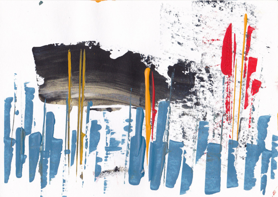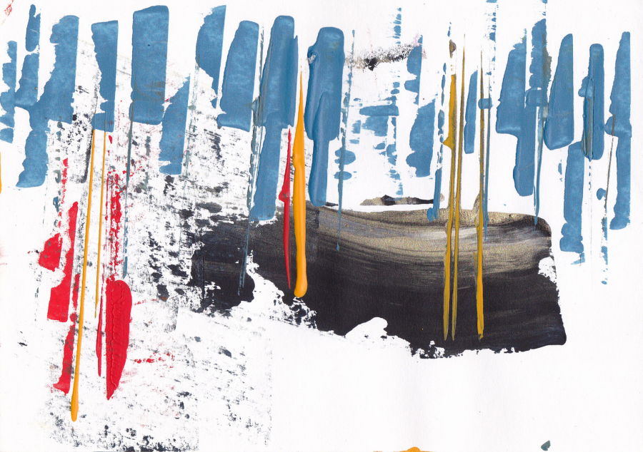 Wer abstrakte Bilder malt, wird oft zu hören bekommen: "Wie'rum hängt es denn eigentlich richtig?" OK - man gewöhnt sich daran. Auf der anderen Seite kann man - wenn man sich nicht Goerg Baselitz nennt - gerade abstrakte Bilder durchaus auch von verschiedenen Seiten betrachten und auch verstehen. Hier ein Beispiel: